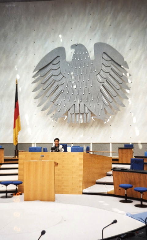 なお、右の写真は連邦議会議長の席に座る私である。