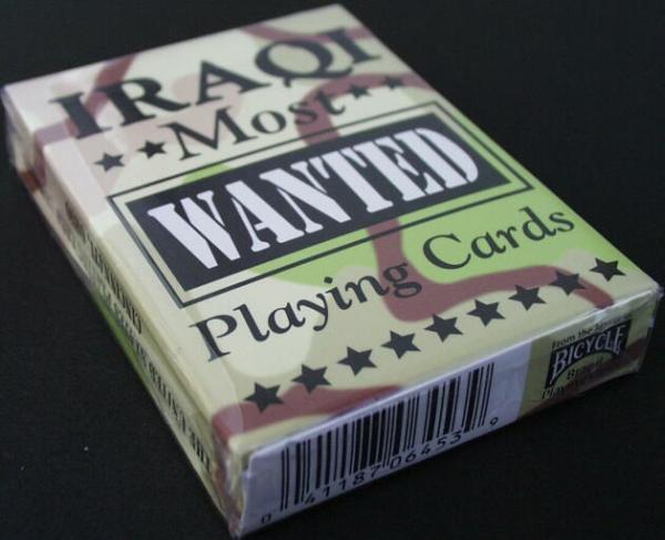 例えば、「WANTED・フセイン」。そして、フセイン大統領の2人の息子、閣僚、高級軍人たちもトランプの形で「お尋ね者」に擬された。便乗して、「ヒーロー・トランプ」まで出てきた。ブッシュや閣僚だけではなく、制服軍人の少将クラスまで載っている。人だけでなく、巡航ミサイルや新型爆弾なども「ヒーロー」として扱われている。だが、最近入手したトランプは違っていた。ブッシュ政権を痛烈に批判する過激な反戦トランプ。何種類かあるが、そのうちの一つをゲットした。「最もお尋ね者の体制――大量破壊の偽善者たち」である。