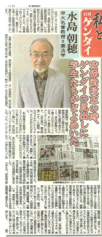 「安倍改憲でどうなる自衛隊」水島朝穂コメント