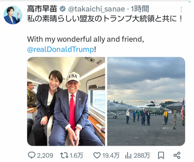 その高市は、首相になってわずか1週間で、早速やってくれた。3つの大きな誤りをおかした。第1に、会談後の日米共同声明もなく、共同記者会見も行われなかったことである。日米首脳会談としてはかなり異例である。第2に、港区にある在日米軍基地(米陸軍六本木ヘリポート)から、大統領専用ヘリ「マリーンワン」に同乗して、米海軍横須賀基地まで42.5キロを飛行したことである。この約15分間の意味は後述する。そして第3に、横須賀の米原子力空母ジョージ・ワシントン上で行ったパフォーマンスである(冒頭の写真参照)。