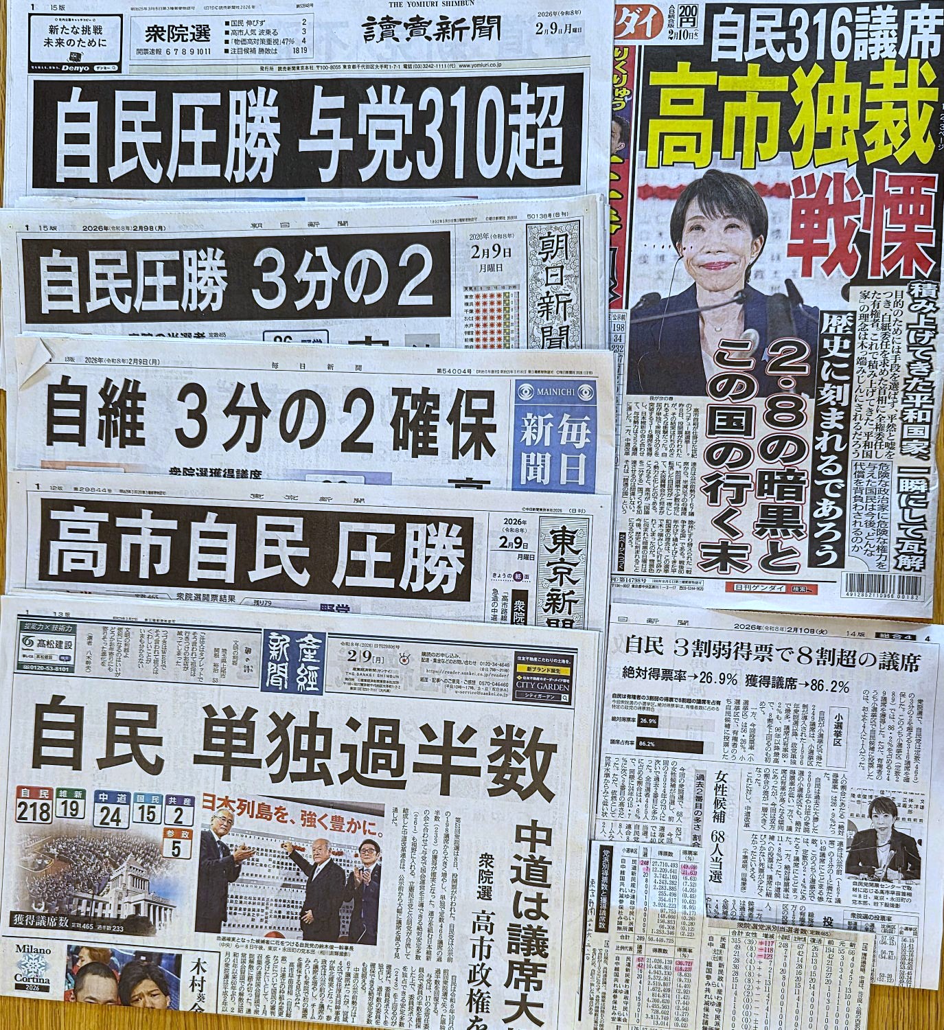 『日本経済新聞』2月10日が指摘するように、今回の選挙は「推し活」型の様相を強めた。政策は背景に退き、「サナ推し」という単純で感情的な構図が、アルゴリズムによって増殖していく。政治家と有権者の関係は、政策に基づく「負託」や成果への「期待」ではなく、ファン心理に近い「応援」へと変質していった。
