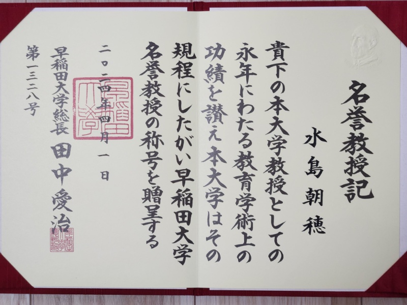 私事になるが、先週の木曜日、6月20日に「名誉教授称号贈呈式」が開催され、総長から「名誉教授記」を授与された。1915年(大正4年)の坪内逍遥が第1号だそうで、私は1328号になる。大学に入学してから52年、1996年に早大教授となってから28年、3月末で定年退職したが、その翌日の4月1日付で名誉教授となったわけである。27年前に「早稲田大学 水島朝穂のホームページ」という青色の見出しを掲げたが、名誉教授となったので、今後ともこれは維持することにしたい。なお、冒頭右の写真は、6月4日に人間ドックのため、長年使ってきた大学近くのクリニックを訪れた際に撮影したものである。大隈講堂の珍しい光景だったので、ここに掲げておく。