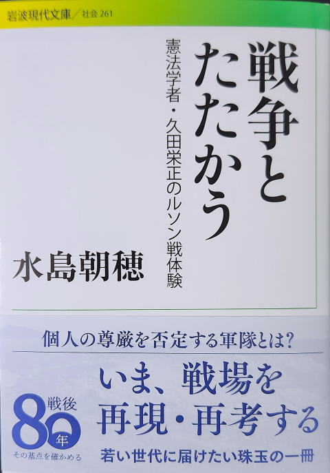 1985年の「戦後40年」に企画が持ち上がり、日本国憲法施行40年に刊行されたのが、久田栄正・水島朝穂『戦争とたたかう― 一憲法学者のルソン島戦場体験』(日本評論社、1987年2月)である。久田は発刊から2年余りで死去した。この本は増刷を重ねたが、21世紀を前にして絶版となった。これが2013年6月、『戦争とたたかう―憲法学者・久田栄正のルソン戦体験』(岩波現代文庫)としてリニュアル・創刊された。時はまさに第2次安倍晋三政権が本格始動した時だった。やがてこの岩波現代文庫も絶版となったが、先月25日、「戦後80年」を前にして復刊(増刷)された(冒頭の写真参照)。すでにお読みの方も、後述するNHK朝の連続テレビ小説(朝ドラ)『あんぱん』の世界とも重なるので、改めて手にとっていただけると幸いである。岩波書店のサイトから注文できる。
